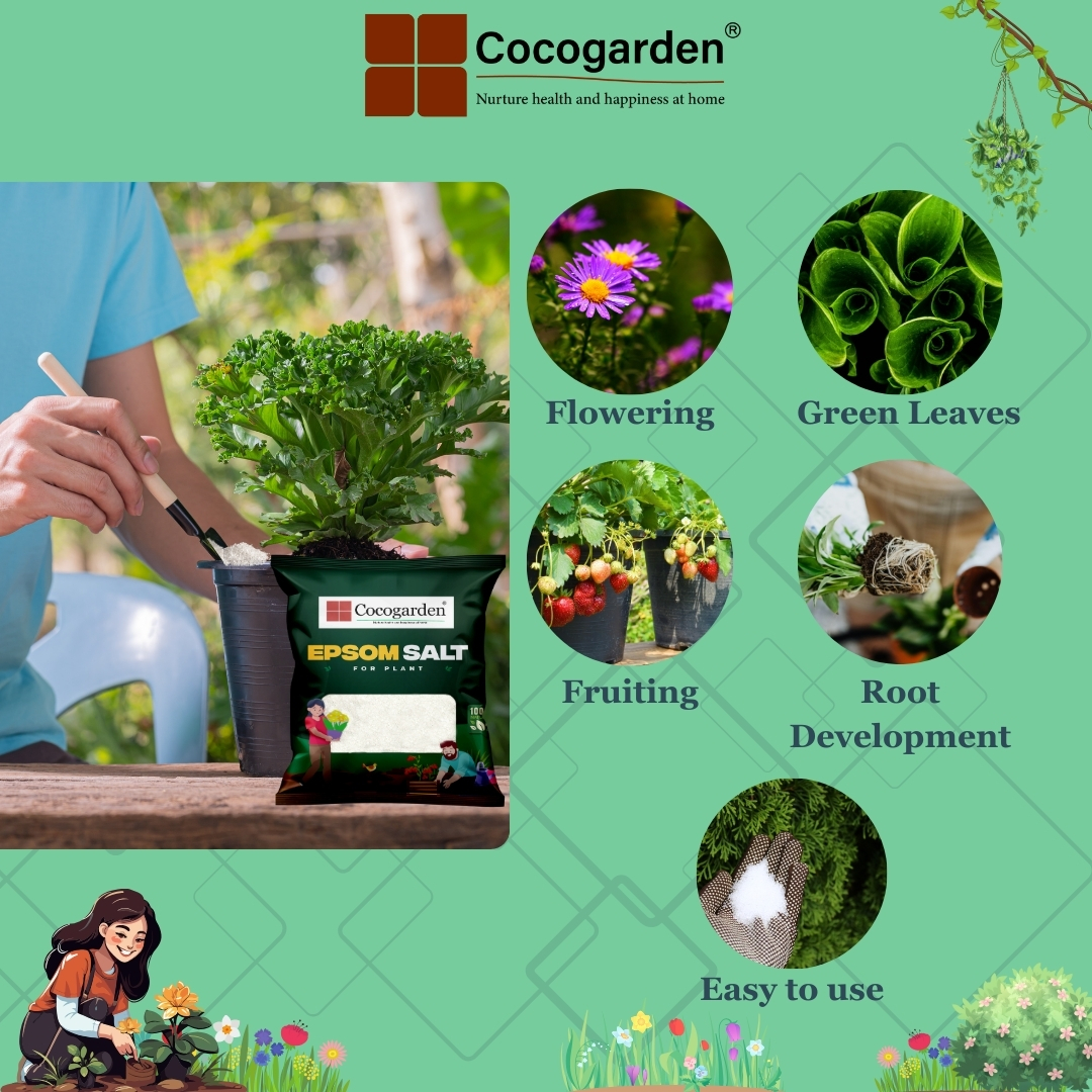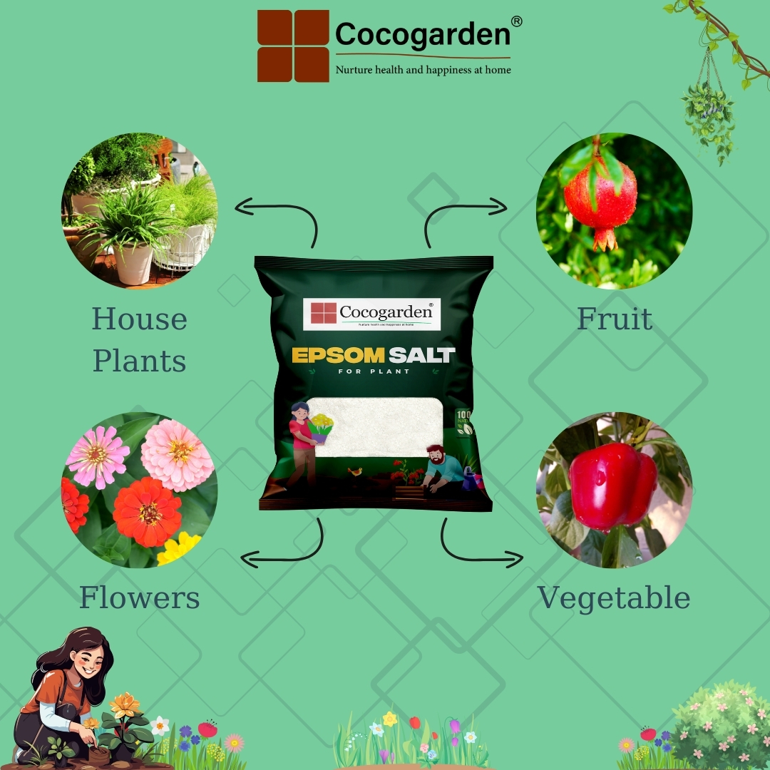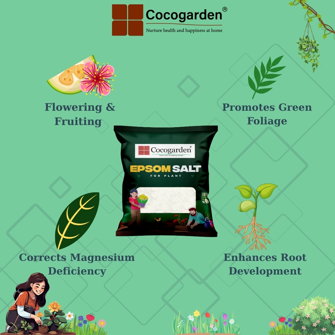 Epsom Salts provide a rapid cure for magnesium deficiency in plants. Magnesium is vital for the production of chlorophyll without which plant foliage will turn brown and wither. The early symptoms of the problem is a yellowing between the veins on older leaves. Tomatoes and house plants can be particularly susceptible to this deficiency. Cocogarden Epsom Salt provides a simple and very effective remedy. Apply as soon as the problem is spotted. Either work into the soil as a base dressing or dissolve the salts in water and apply directly to the leaves with a sprayer or watering can.