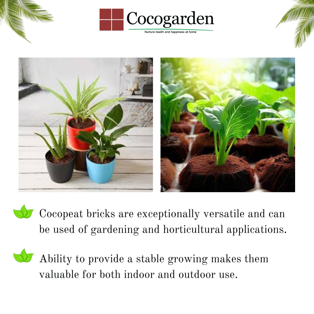 • Versatility: Cocopeat bricks are exceptionally versatile and can be used of gardening and horticultural applications. Their ability to provide a stable growing makes them valuable for both indoor and outdoor use.