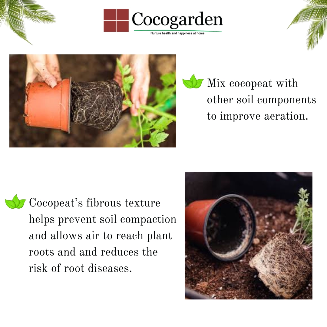 • Supporting Healthy Root Growth: Mix cocopeat with other soil components to improve aeration. Cocopeat’s fibrous texture helps prevent soil compaction and allows air to reach plant roots and and reduces the risk of root diseases.